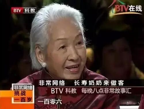 这位老人就是张明珠,出生于1905年。2011年,她参加北京电视台生活频道的一档节目,震惊观众!因为,106岁的她,不仅是自己走上台的,而且皮肤细腻、神采奕奕!